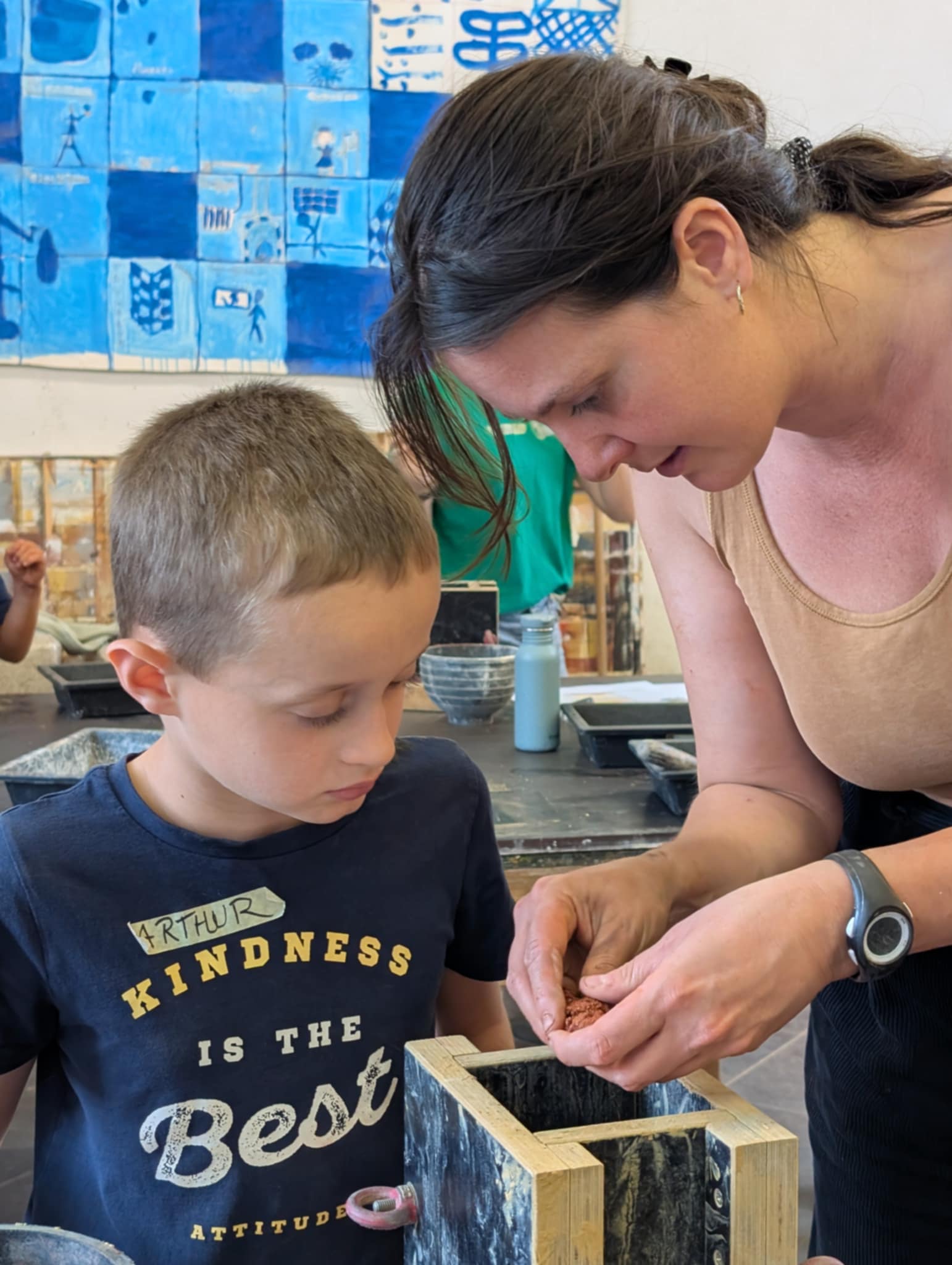 Une animatrice pédagogique et un artisan